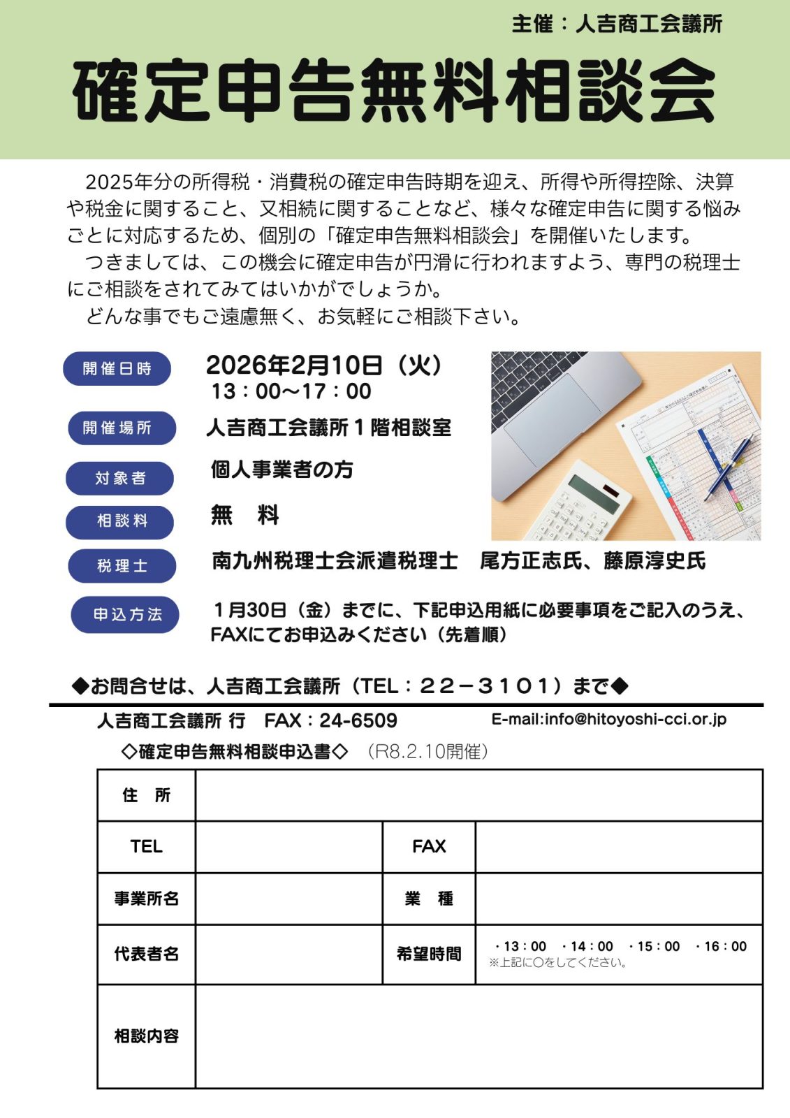 ご不明点に、税理士が個別に対応する 「確定申告無料相談会」 を開催いたします。
