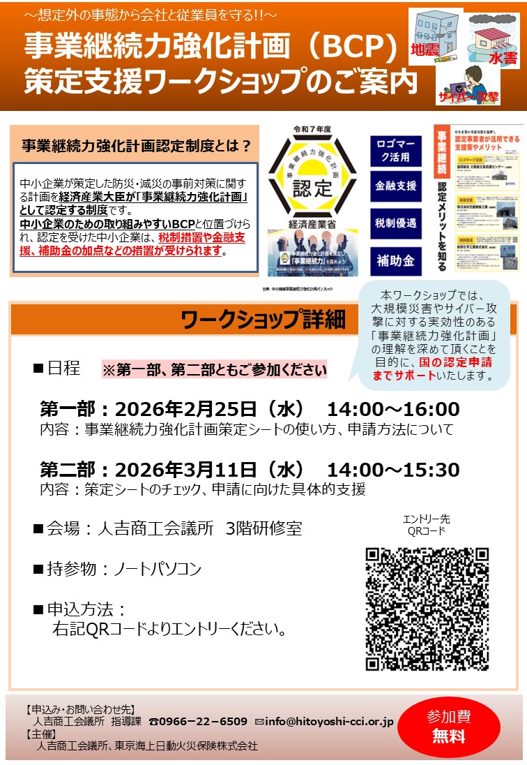 事業継続力強化計画(BCP)策定支援セミナーの開催について